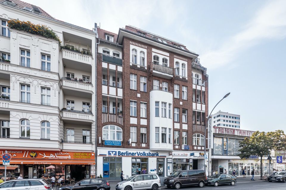 The property, built around 1900, consists of a five-story front building, two rear buildings and two side wings on the left. The property is located in the Berlin district of Mitte, in the neighborhood of Wedding. Müllerstraße, as well as the adjacent Seestraße and Leopoldplatz, is one of the central and sought-after shopping locations in the area.